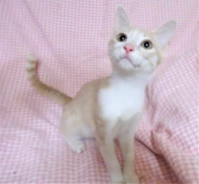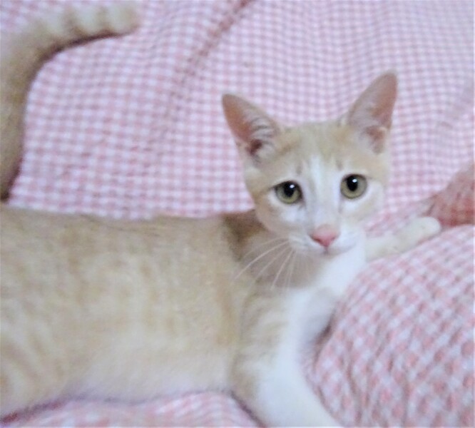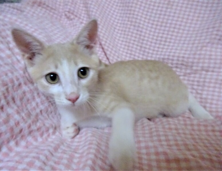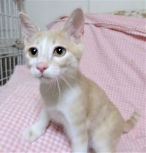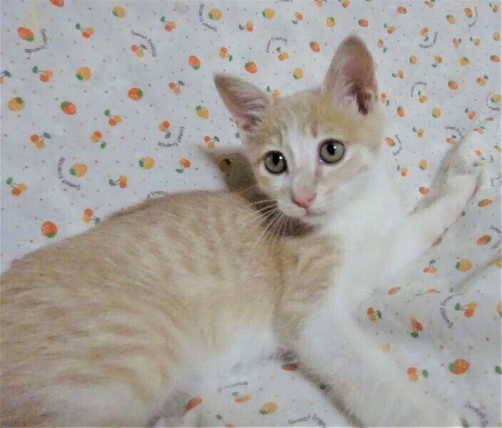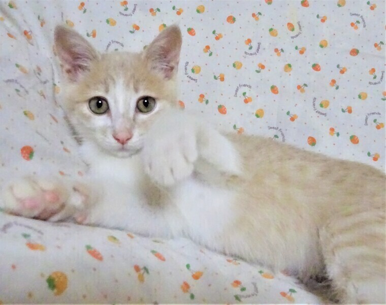 | 特徴(性格など) | 仮名: 草太くん(オス) 毛色: 淡いクリーム色と白 性格: 威嚇なく抱っこ出来、薬や爪切りも大丈夫です。人は好きみたいで、人懐っこいです。 甘えん坊で一人遊びも上手に出来ます。 手を出すとスリスリしてきて、遊ぼうよと誘います。病院に行っても喉ゴロゴロで獣医さんにスリスリするので診察出来ないと言われます。 大人猫とはなんとなくうまく付き合えるようで、子猫同士は活発にプロレスをしたり追いかけっこをしたりして、遊んでいます。 猫飼い初心者の方でも、優しい先住猫ちゃんがいるお家でも大丈夫だと思います。 子猫ですからお届けは車で1時間圏内でお願いします。 |