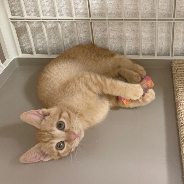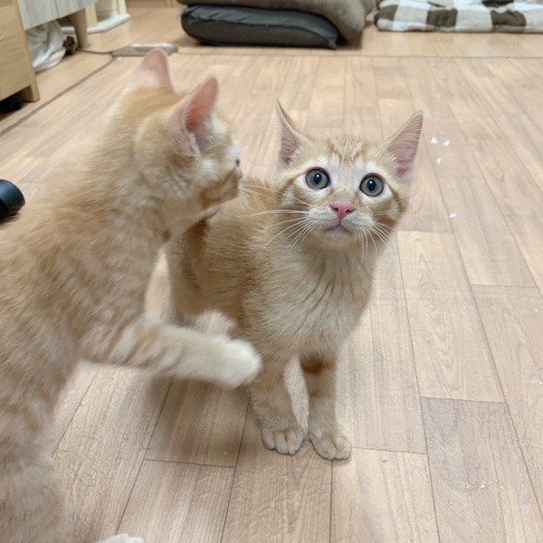 | 特徴(性格など) | 茶トラ5兄妹の中で1匹だけ1回り大きい男の子。みんなのお兄ちゃん的存在!よく鳴いて意思表示をしてくれます。遊びは全力で尻尾をぴんと立てて、いつでも猛ダッシュ(笑)飛んだり跳ねたり元気です。他の4匹に比べると何だかとても大きく感じてしまいますが、まだまだ子猫ちゃんです。まだ保護主の所に来て間もないので、これからどんな個性が見られるかとても楽しみです。 5匹みんなとても仲良しですが、紅一点のさきちゃんがりょうまくんのことが大好きなようなので、2匹一緒のお迎えも大歓迎です! 健康管理をしっかりしてくださる方、また安全に暮らせる様にお部屋のお片付け、目に見える形での脱走防止対策を徹底してくださる方とご縁がつながると嬉しいです。対策等でわからないことは アドバイスさせていただきますので、疑問点などは遠慮なく聞いていただきたいです。 ご自宅の玄関・開ける窓・ケージを置くお部屋などのお写真をご持参いただきますと、より具体的なお話ができると思います。 |