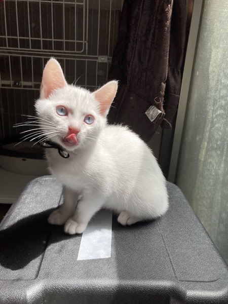 | 特徴(性格など) | 真っ白でマリンブルーの瞳が美しい子です。肉球は綺麗な桃色。 性格はとってもおてんば。 猫らしい猫で、人間に興味が無いのか 来客にも動じずその場で寝続け、抱っこもなでなでも得意ではありません(※人馴れは完璧です)。 ですが猫が大好きで、スリスリしに行ったり遊びに誘ったりしています。 好奇心旺盛で遊び好きな女の子です。 羽系のおもちゃと高い場所、外が見える場所が大好き。 五人兄弟の末っ子で、他の子は生後2ヶ月頃里子に行きましたが、一番身体が小さく少食だった為、自宅で様子を見ていました。 相変わらず少食ですが、体重等標準に達しましたので里親様を募集します。 (写真は後に行くにつれて小さい時になります) |