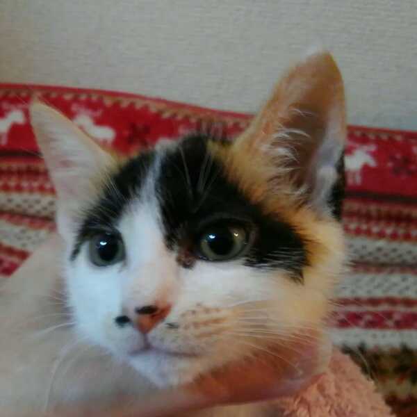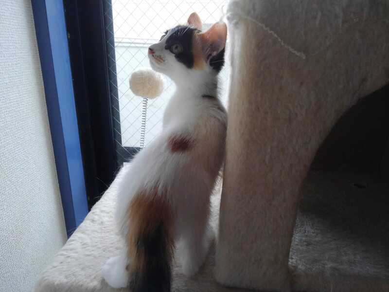 | 特徴(性格など) | 人馴れしており元気いっぱいの女の子です。 三毛女の気の強さの片りんも見られて 面白い子です。 |