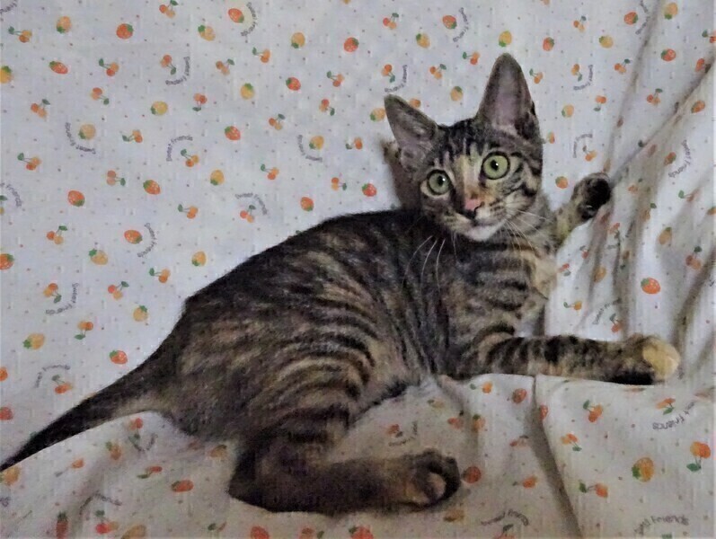 | 特徴(性格など) | 仮名: かなえちゃん(メス) 毛色: キジトラ 性格: ミルク育ちなので、人には馴れていますが、長い風邪で治療のため、捕まると目薬、薬だった記憶があるのか、逃げる時もありますが、簡単に捕まります。 少し怖がりで大勢の人が苦手のようで、譲渡会などではベッドに潜って隠れようとします。 姉妹のたまえちゃんとは仲良しで、一緒だと心強いようです。 一緒のご縁があると嬉しいですが、別々でも構いません。じゃらしやおもちゃが好きで活発に、良く遊びます。 子猫達ともプロレスをしたり追いかけっこをしたりして遊びますし、大人猫とも付き合えますので、優しい先住猫ちゃんがいるお家でも大丈夫だと思います。 子猫ですからお届けは車で1時間圏内でお願いします。 検便済 駆虫済 3種混合ワクチン済 避妊手術済 猫エイズ・白血病ウィルス検査はともに陰性 |