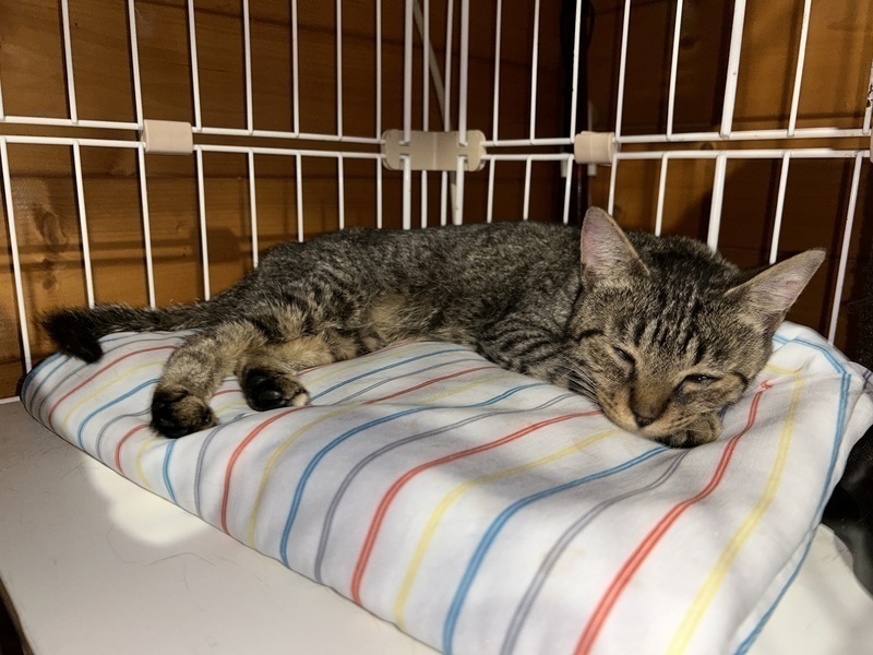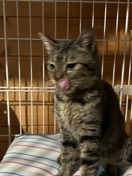 | 特徴(性格など) | まだ子猫感の残る幼ネコです。きれいな目できれいな毛並みのかわいいネコさんです。しっぽはやや長めです。日に日に人慣れが進んでおり、グルーミングが出来るようになりました。慣れてくると思います。大変元気ですが、検査にてFIV陽性(未発症)です。保護時に痩せてましたが、よくご飯を食べていて現在の健康は問題ありません。ワクチン、避妊手術は8月2日に実施しました。 | ||