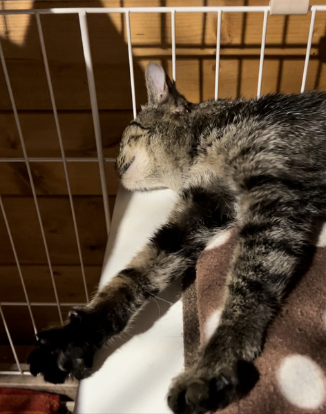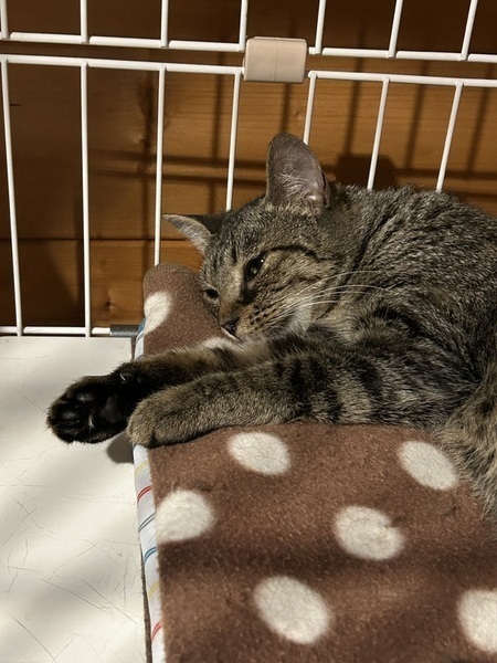 | 里親募集する理由 | 横浜市都築区の早渕公園で、後脚にケガをして衰弱しているところを保護しました。保護日は令和5年7月3日です。我が家は病気治療中を含む3頭の先住ネコがおり、飼ってあげることが出来ません。FIV陽性(未発症)のため、ご理解いただける方、何卒よろしくお願い申し上げます。 | ||