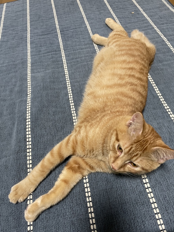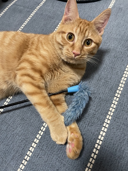 | 特徴(性格など) | 茶トラ柄の元気いっぱいの男の子です。 人懐っこく、活発で、とても甘えん坊です。 病院では生後2週間くらいと言われました。 |