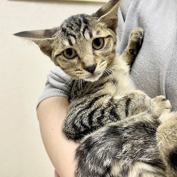 | 特徴(性格など) | 種類は雑種 模様はキジトラ 人慣れは完璧ではありませんが、触ったり抱っこしたりはできます。 また、初めに比べて自分から寄ってきてくれることが増えました。 少し警戒はしている様子ですが。 |