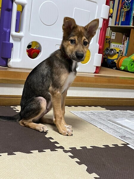 | 特徴(性格など) | 人に慣れるのに時間がかかります。 犬にくっついて歩くなど、子犬らしさが見られます。 親犬は分かりませんので、どの程度の大きさになるかは不明。 ハウストレーニング・トイレトレーニングは順調です。 散歩トレーニング中。体重6.2㎏(9月3日) つめ切り、シャンプーなど問題なくできますが、すんなりと抱っこは時間がかかりそうです。 |