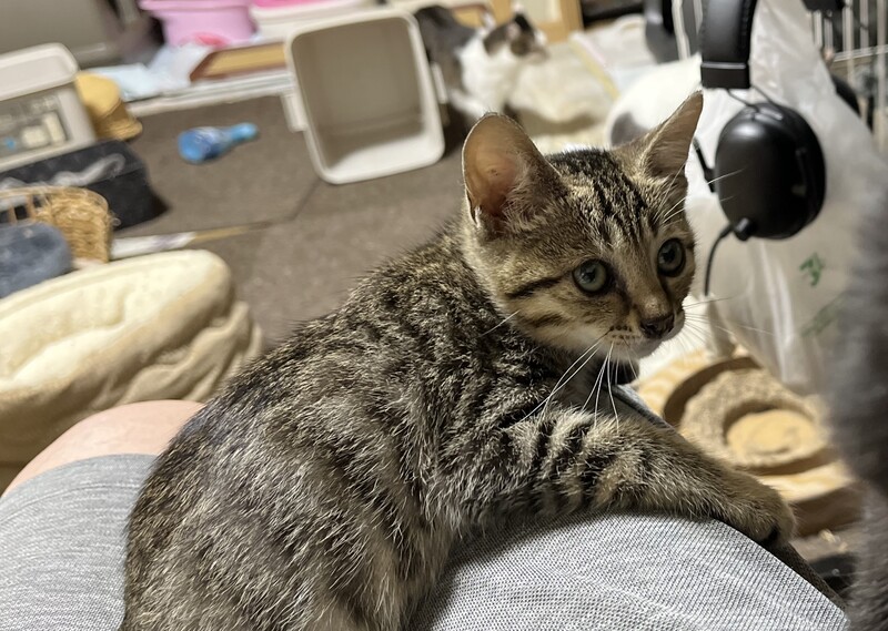 | 特徴(性格など) | キジトラのメスです。 人慣れしていて人懐こいです。先住猫にもすぐなじめるいい子です |