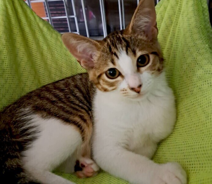 | 里親募集する理由 | 駅前にたくさんの子猫がいると通行人からに連絡を受け、保護しました。 2匹のママが6匹の子猫を産んだそうですが、子猫の1匹は行方不明に。残った5匹を1匹のママが育てていました。 |