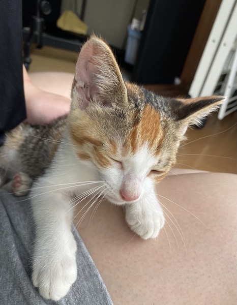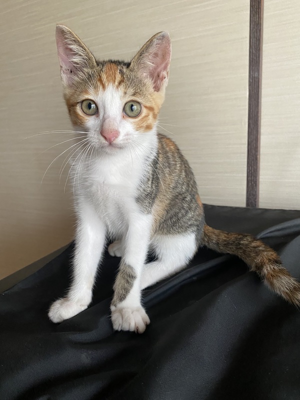 | 特徴(性格など) | 三毛猫の女の子です。とても人懐っこい性格で、ご飯を食べる勢いとネズミのおもちゃを追いかけ回るのでとても元気があります。 | ||