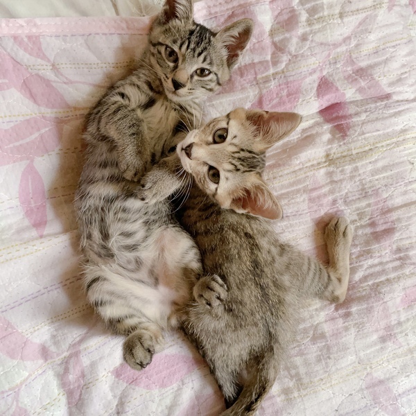 | 特徴(性格など) | 性別わかりません。 どちらもやんちゃで、おもちゃで遊ぶのが大好きです。横になっていると、くっついてきて一緒に寝たりします。 |