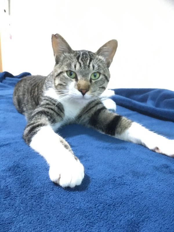 | 特徴(性格など) | サバトラ柄です。非常に人慣れしていて飼い猫だったと思います。トイレのしつけ不要でした。エイズ、白血病検査、陰性でした。 | ||