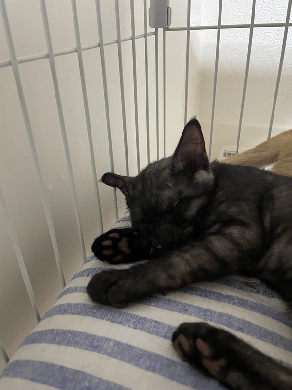| 特徴(性格など) | ブラックスモークのイケニャンくん! 性格は優しく、他の猫にもフレンドリー。 抱っこ大好き、膝の上にも乗ってきます。 猫初心者にもおすすめできる、良い子です。 |