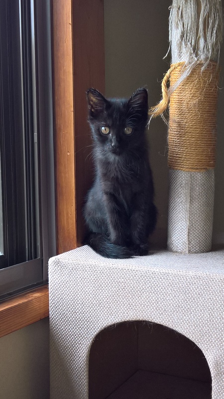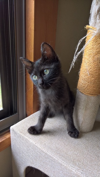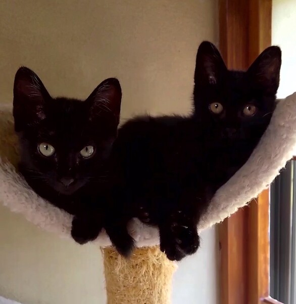 | 特徴(性格など) | 濃いめの黒。濃いめのシルキー黒。 目色の違いが将来楽しみですね。 2頭尾っぽは長め。 まっすぐ尾っぽ。まっすぐ先がちょっとカギ尾っぽ。 2頭とも抱っこすると喉を鳴らして甘えてきます。 大人猫と一緒に丸くなることも。 お膝に乗ってきて抱っこをせがむのはカギ尾っぽちゃん。 |
