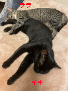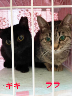 | 特徴(性格など) | 仮名を『キキ』と言います。 黒の女の仔です。 多頭飼育崩壊でレスキューされました。 多頭飼育崩壊現場からレスキューされた時はガリガリに痩せていました。 ご飯をもりもり食べ、今では体重も増えて毛の艶もよくなりました。 好奇心旺盛の愛嬌たっぷりな猫です。 先住猫のお兄ちゃんたちにくっついて遊んでいます。 保護してすぐ、投薬と点鼻薬で鼻炎の治療をしました。 鼻が少しスースー音がしていますが、室内での日時生活に支障はなく、元気いっぱいです。 治療の甲斐あって、現在は投薬なしで落ち着いています。 日に数回くしゃみをします。 ツーショットに写っているきじとら「ララ」と一緒に保護されました。姉妹のように仲良しです。 キキとララを一緒にお迎えしてくれる方も大歓迎です。 愛らしいキキに会いに来てください。 お見合い場所は埼玉県入間市か川越市になります。 【医療処置情報】これから実施のも含まれます *健康チェック *3種混合ワクチン接種 (年1回定期的にしております。詳細はお見合い時にお知らせいたします) *ウイルス検査実施(FIV.FeLV共に陰性) *検便実施 *駆虫薬投与(レボリューション、ドロンタール) *マイクロチップ装着 *不妊・去勢手術 |