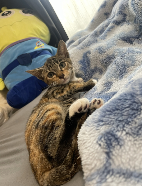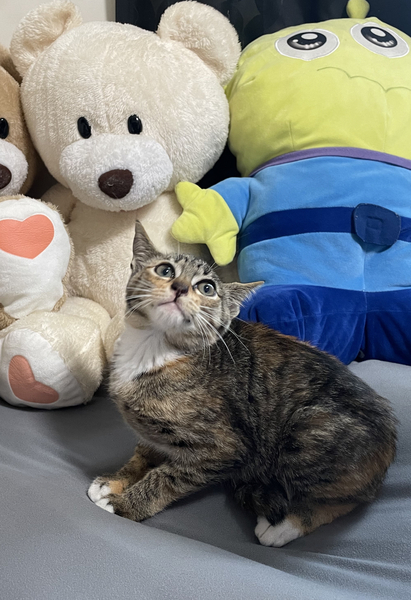 | 特徴(性格など) | 女の子・1150gの推定2ヶ月の三毛猫 健康状態:良好 ウイルス検査済み:FeLV、FIV陰性 ノミダニ駆除済み まだ少し臆病な一面もありますが、 威嚇などは一度もした事がなく 抱っこも撫でることも大丈夫なので、すぐ人馴れすると思われます。 ヨシヨシ撫でられるの好きな子で、そのまま寝たりもします。 お顔は小顔の美人さんです♡ 今はカリカリをふやかしたフードを与えていますが、よく食べます。 トイレもバッチリです!! 好奇心旺盛で遊びたい盛りなお嬢様です! 姉妹で保護しましたが、恐らくお姉ちゃんのような性格に見えます。 お腹がすいたり、遊んで欲しいと鳴いて呼んできます笑 活発でとても可愛らしい子です。 わんぱくなまだまだ子猫なので、 お留守番や遊んであげられる時間が短いと夜鳴き等に繋がる原因になります。 ご飯も一日に4回ほどに分けて与えているので、成猫よりか子猫は手間はかかります。 それを承知の上で家族としてお迎えしていただけたら幸いです。 |
