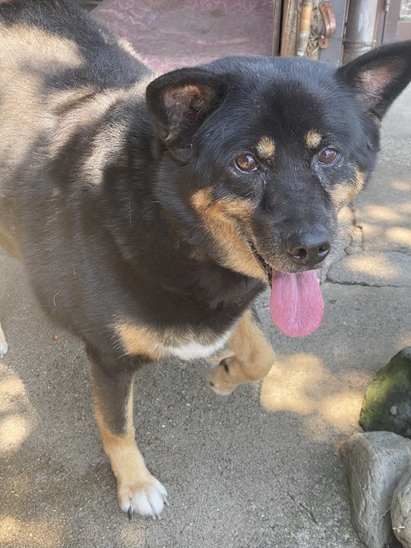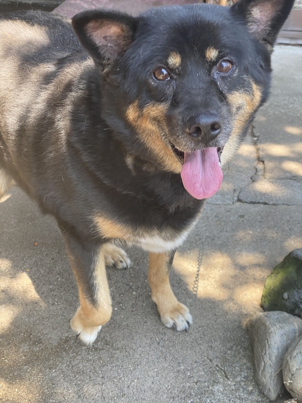 | 特徴(性格など) | 黒と茶色の犬です。 性格はおとなしく、撫でてもらえるだけでデレデレしてしまうような甘えん坊です。 子供が大好きで、ボールなどのオモチャも大好きです。 散歩も好きで綱をグイグイ引っ張るような事もせず、大人しく散歩させてくれます。 |