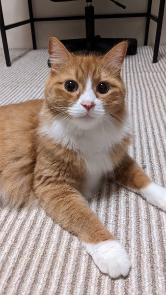 | 特徴(性格など) | 少し怖がりですが慣れると夜側で寝てくれます。抱っこがあまり好きではないけれど気づくといつも側にいるコです。おもちゃで遊んであげるととても喜びます。昼間留守番大丈夫です。先住猫が優しい子ならうまく付き合えると思います。 毛が柔らかく抜けにくいので飼いやすいです。ビビリな為慣れるまで時間がかかると思いますがよろしくお願いします。エイズ白血病陰性です。 |