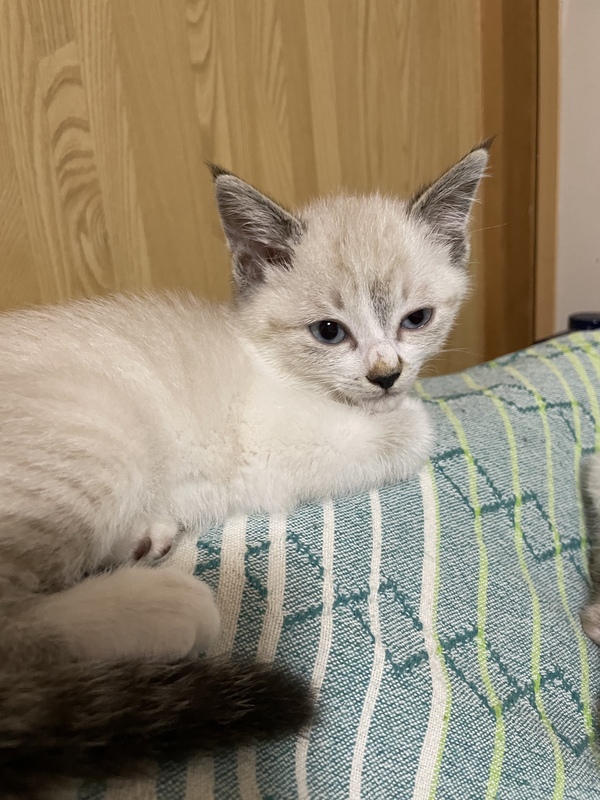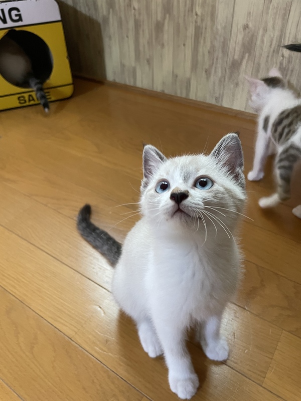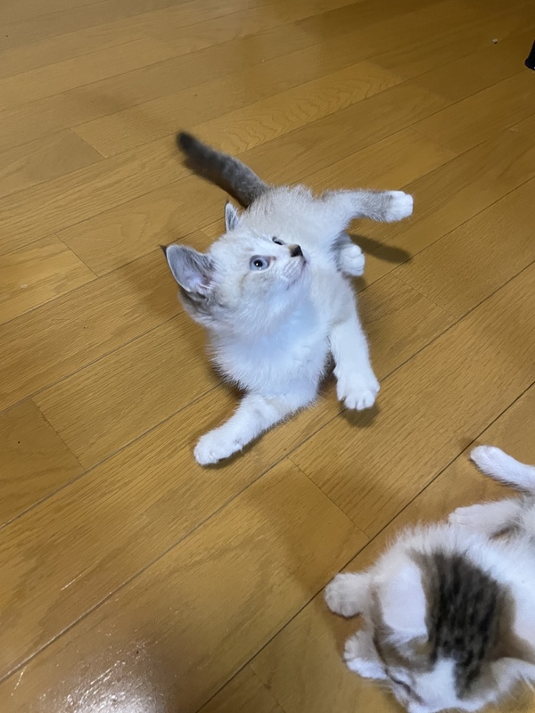 | 特徴(性格など) | シャム柄、ブルーアイのオスです。 兄弟で保護しています。 やんちゃ盛りです^_^ スクスク成長中で、仲良く遊んでいます。 キルアくんエイズ検査で疑陽性が出ました 猫エイズ陽性ですが、赤ちゃん猫の場合おそらくお母さんの抗体が残っていて消える(陰性になる)ことがほとんどだそうです。生後4ヶ月以降で再検査になります。 エイズ白血病検査済み 3種混合ワクチン1回済み ノミダニ回虫駆除済み 7/30の譲渡会に参加予定です 是非譲渡会に足をお運び下さい。 予約制11時〜14:30まで IDONOカフェテラス&nana 〒639-1104 奈良県大和郡山市井戸野町267-5 奈良交通自動車学校さまの前 |