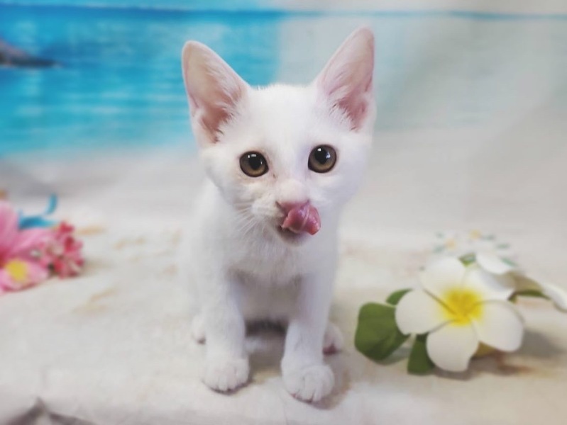 | 特徴(性格など) | 白猫の女の子。 順応性が高く好奇心旺盛。人慣れ抜群! 超々甘えん坊で元気な女の子。人を見ると寄ってきてスリスリします。癒やし効果大です。 まっすぐしっぽです。 健康状態良好! ノミダニ駆除済み(フロントラインスプレー) 駆虫薬投薬済み FIV(猫エイズ)陰性 FeLV(猫白血病)陰性 三種混合ワクチン7/24に1回目接種しました。 |