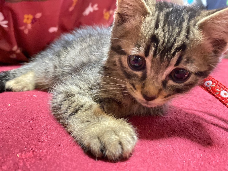 | 特徴(性格など) | キジトラ短毛。おてんば娘。ピカチュウのようなギザギザかぎしっぽ。 | ||