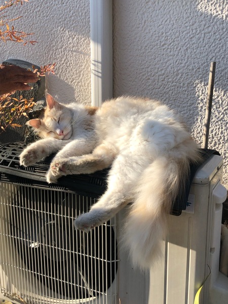 | 特徴(性格など) | オス。長毛。白っぽい茶トラ。人懐こい。見知らぬ人にもスリスリ寄ってきます。 | ||