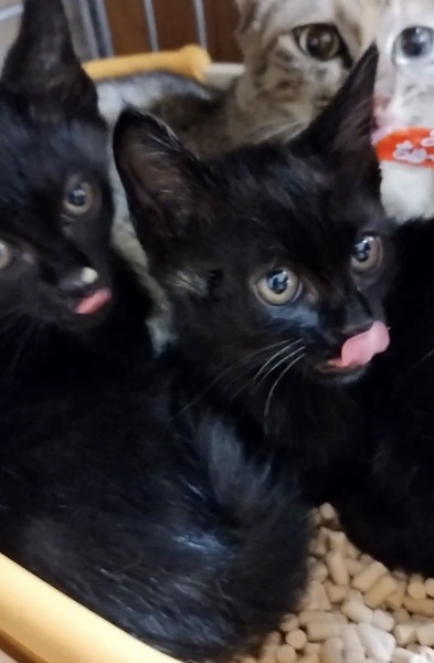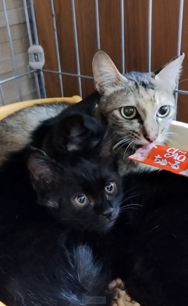 | 里親募集する理由 | やせ細ったサビ柄のママ猫ちゃんと2匹のかわいい黒猫ちゃんを、いつもの散歩道でこの猛暑の中ぐったりしているのを発見し即保護いたしました。人間でも体調壊してしまうほどのこの暑さ。このままでは親子ともども元気に育つことができるか心配になり、まだまだこれからの猫性幸せに過ごしてほしく知人と保護いたしました。 既に病院での検査済み。 ママ猫ちゃんに関しましては避妊手術済ませました。ママ猫ちゃんに関しましては栄養をしっかり取らせてあげてふっくらとさせること以外は問題ございませんでした。子猫ちゃん兄妹はいたって健康です。 |