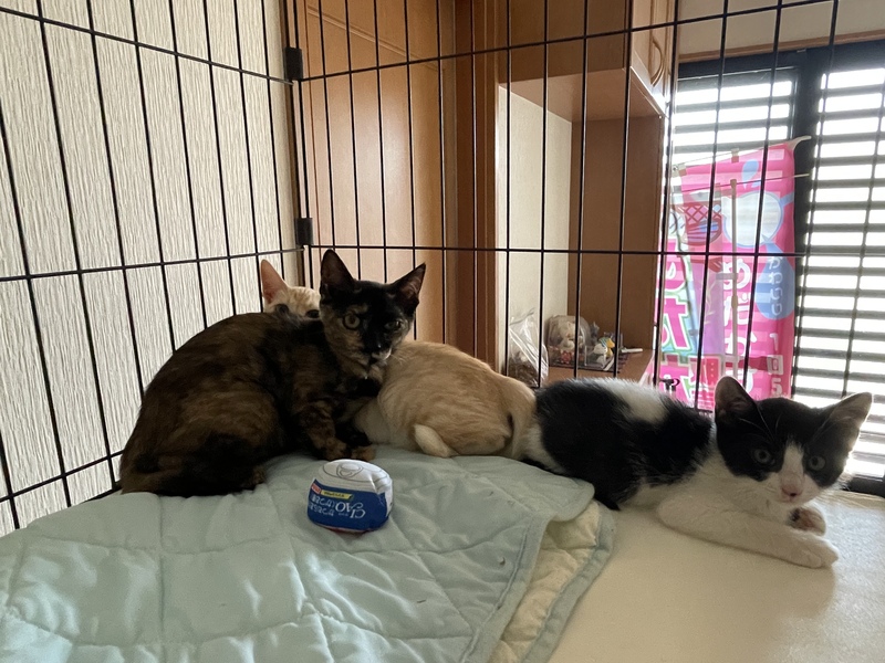 | 里親募集する理由 | 家の横に野良ちゃん親子が現れました。しばらく様子見てましたが猛暑もあり少し疲れてきていたので覚悟して保護しました。 個人的に保護活動してますが現在家に20匹います。正直保護もためらいましたが外生活の厳しさを知ってるため保護決意! 1日でもはやく優しい里親さんがみつかるよう協力よろしくお願いします。 |