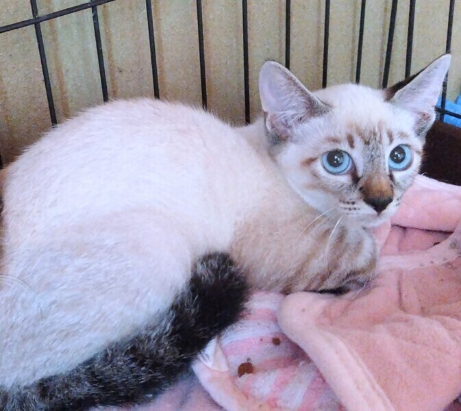 | 特徴(性格など) | ブルーの瞳がとっても綺麗な美形の子猫ちゃんです! 体はオフホワイトです! 2日前に捕まえただけなので男の子か女の子か不明です! まだ捕まえたばかりで大人しいですが〜 人間になれていないみたいなので〜 兄弟で保護しました〜 もう1匹 グレー白のミックスの子猫 まだ 保護できてません! 私が引き離した形になっているので〜 外で兄弟に会いたくて泣いています〜 早く 保護したいです! 多分兄弟のお姉さんだと思うのですが 弟のキジ クロちゃんに対して優しいです! 2匹 仲がいいので一緒に引き取ってくださる方希望です! |