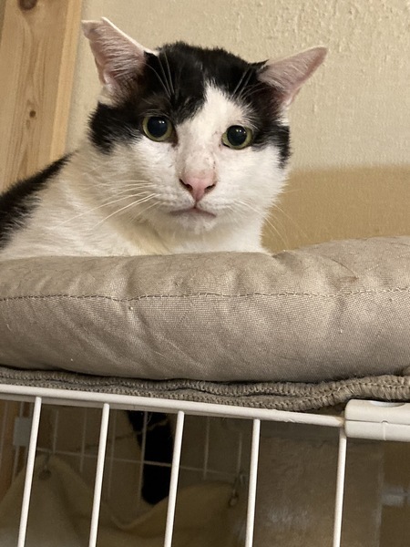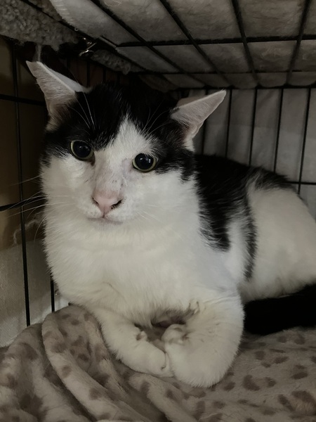 | 特徴(性格など) | サブちゃん♂推定2歳~ハチワレの男子です!困り顔がとても可愛いです。体が大きくて体重が8キロあります。とても大人しい性格ですがおもちゃで遊んだりします。少し怖がり屋さんですが毎日一緒に過ごす内に信頼関係を築いていけばとても懐っこくなりそうです。猫との相性も良いです。是非一度会いに来て下さい。 猫エイズ(+) 白血病(-) 猫エイズ陽性のりんご猫です |