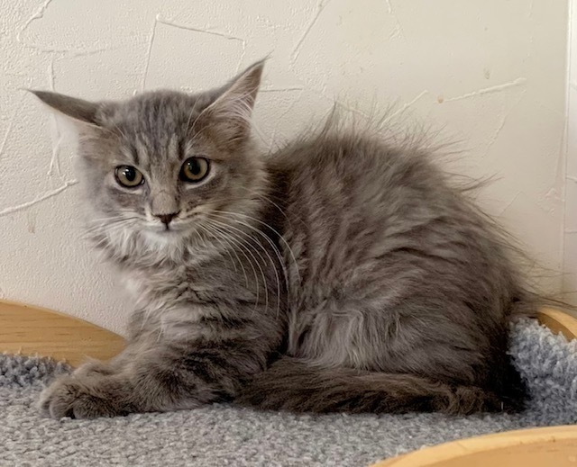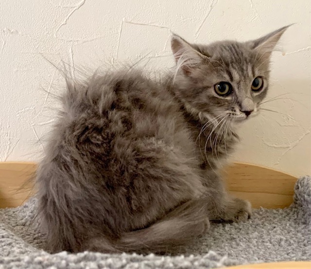 | 特徴(性格など) | 【仮名】阿形くん 【性格】シルバーモフモフな阿形くん♪ 仮名の阿形は始まりの~という意味♪ まさに新しいネコライフの始まりを予感させるにゃんこです♪ ルックスはひいき目に見ても最強! 写真の100倍イケメンなのは保証します(笑) でも人馴れはイマイチ(笑) おもちゃで遊ぶしニャンプロもするけど ヒトに対してはまだまだビビリます(泣) 子猫いっぱいのウチに居る限りは時間をかけてあげられないので 新しいお宅で愛情たっぷりに育てて頂ければありがたいです♪ まだまだ修行中の身なので兄妹か同世代とのペアで お迎えの方が良いと思います♪ ※1ピキ譲渡応相談 |