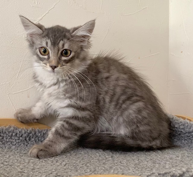 | 特徴(性格など) | 【仮名】吽形くん 【性格】シルバーモフモフな吽形くん♪ 仮名の吽形は~最後という意味♪ まさに新しいネコライフに最後まで寄り添ってくれるにゃんこです♪ ルックスはひいき目に見ても最強! 写真の100倍イケメンなのは保証します(笑) でも人馴れはイマイチ(笑) おもちゃで遊ぶしニャンプロもするけど ヒトに対してはまだまだビビリます(泣) 子猫いっぱいのウチに居る限りは時間をかけてあげられないので 新しいお宅で愛情たっぷりに育てて頂ければありがたいです♪ まだまだ修行中の身なので兄妹か同世代とのペアで お迎えの方が良いと思います♪ ※1ピキ譲渡応相談 |