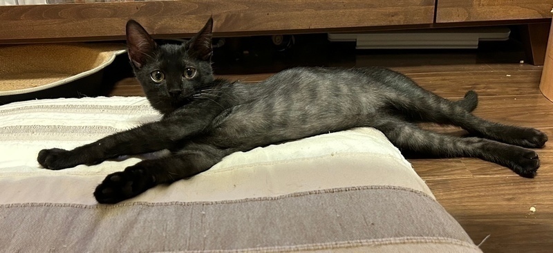 | 特徴(性格など) | 【仮名】ようかんくん 【性格】 元気一杯のイケイケのようかんくん♪ 毎日、体力が続く限り兄妹のあんみつちゃんと走り回っています♪ ウエットフード大好き♥仲良く並んでムシャムシャ~♪ 咀嚼音をお楽しみ下さい(笑) 日が当たったりぬぃ~んっと伸びるとシマシマが出現! 実はブラックキジトラくんなんです( ゚Д゚) まだまだ色々学習中なので兄妹か同世代とのペアで お迎えの方のみ希望します♪ ※1ピキ譲渡不可 |