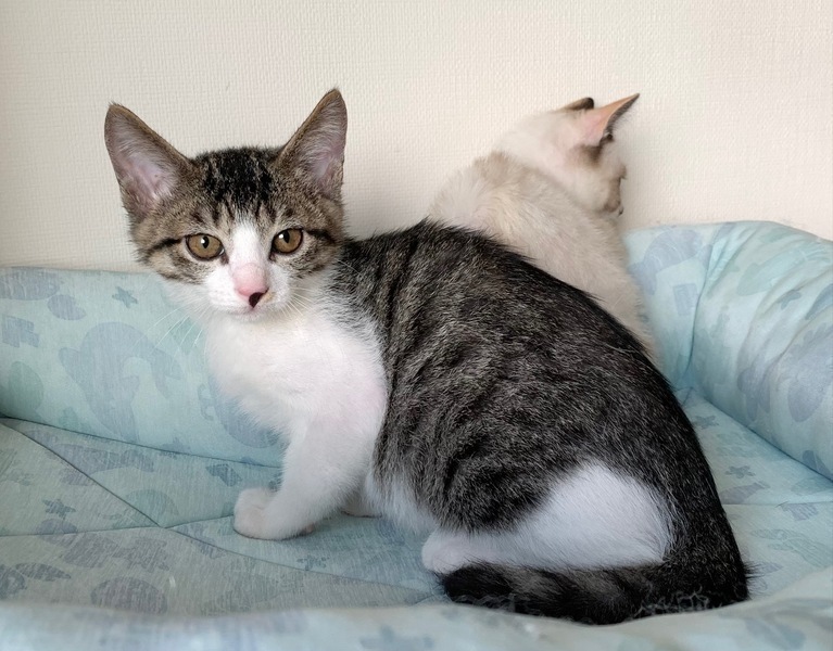 | 特徴(性格など) | 【仮名】真くん 【性格】中々イケメンの真くん♪ まあいたって普通のキジシロですが ワンパクさがウリなにゃんこです♪ 元気いっぱい!おもちゃ遊びもにゃんプロもお手のモノ♪ 毎日食べて遊んで寝ての羨ましいにゃんこライフを満喫中です(笑) まだちょっとだけヒトに対してビビりますが 抱っこされるとされるがままなので余裕でしょう(笑) まだまだ修行中の身なので同世代にゃんことのペアでの お迎えを希望します♪ ※1ピキ譲渡応相談 |