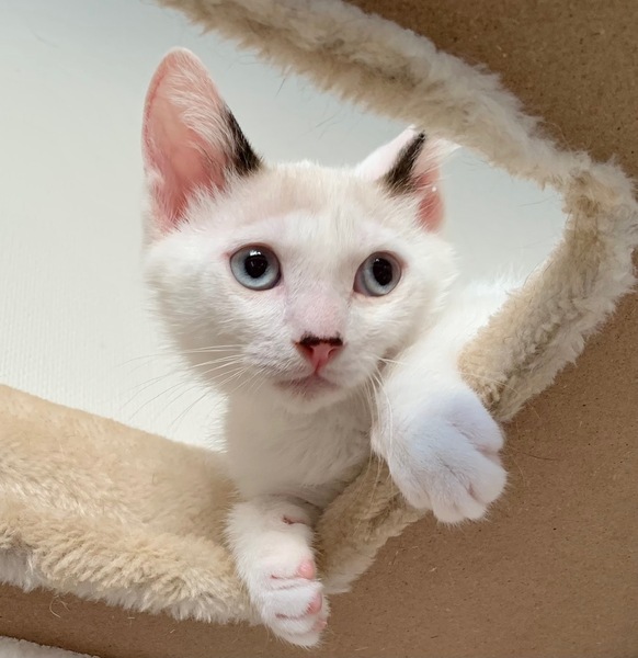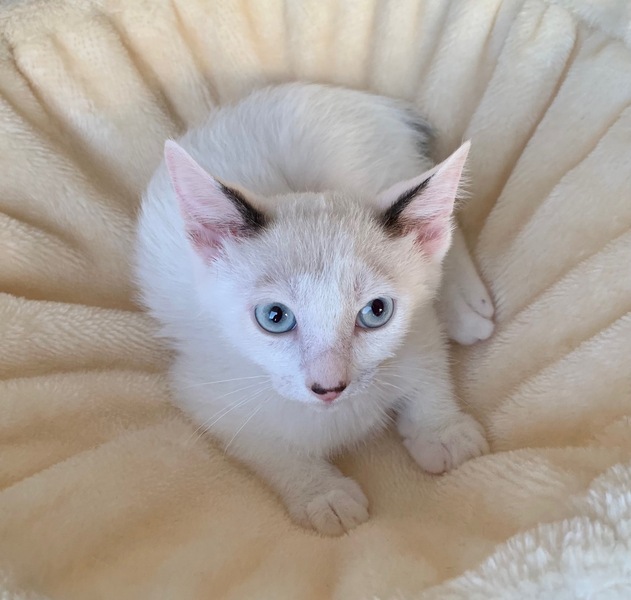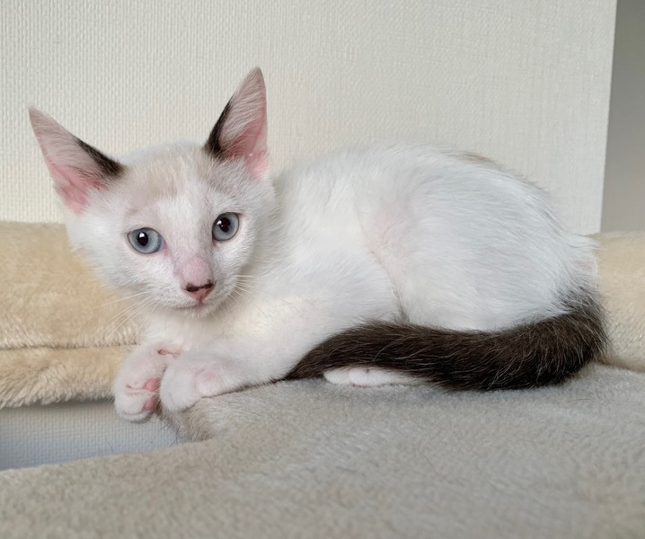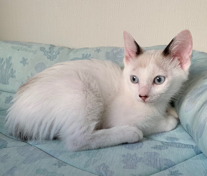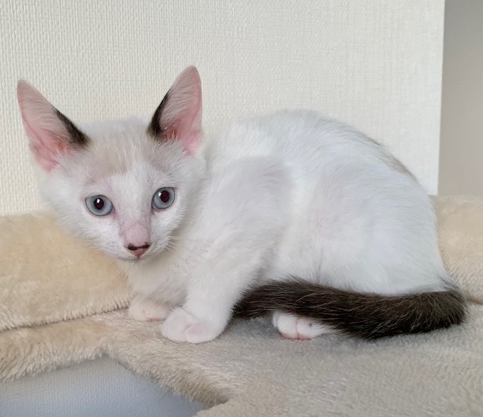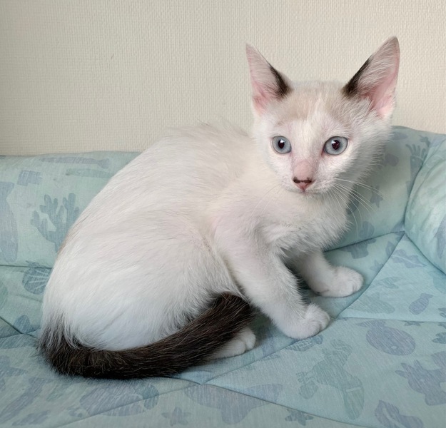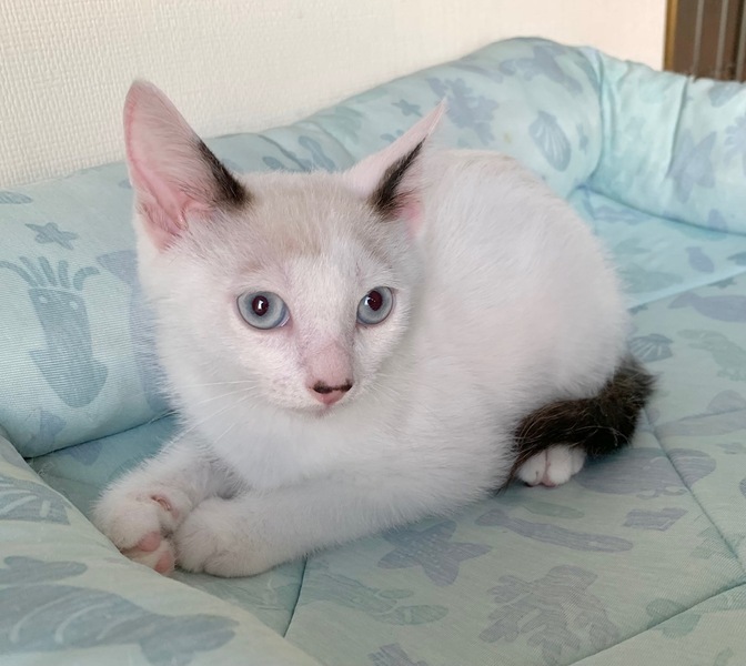 | 特徴(性格など) | 【仮名】蒼(あお)くん 【性格】ブルーアイの碧くん♪ 青とも緑とも見える美しい瞳から どちらにも読める碧と名付けました♪ 活発でややKYなトコもありますがチビッコはそんなモンです(笑) にゃんプロ大好き!ごはんも大好き! 見ていて爽快な気持ちになりますよ♪ まだまだ修行中の身なので同世代にゃんことの ペアでのお迎えを希望します♪ ※1ピキ譲渡不可 |