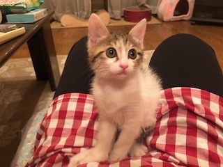 | 特徴(性格など) | <初期医療> 健康状態:良好 白血病ウイルス検査:陰性 エイズウイルス検査:陰性 ワクチン接種:7月18日 ノミダニ駆除薬:済み 糞便検査:済 とても可愛い白キジ仔猫の女の子で、初心者様にもオススメです。 フードもよく食べ、トイレもバッチリです。 人が大好きで抱っこも大好きで、ゴロゴロ言って、とても甘えん坊です。 仲良しのワタルと一緒にいけるお家を希望します。 まだ小さな子猫なので、お留守番のあるおうち、高齢者様、単身者様はご遠慮ください。 |