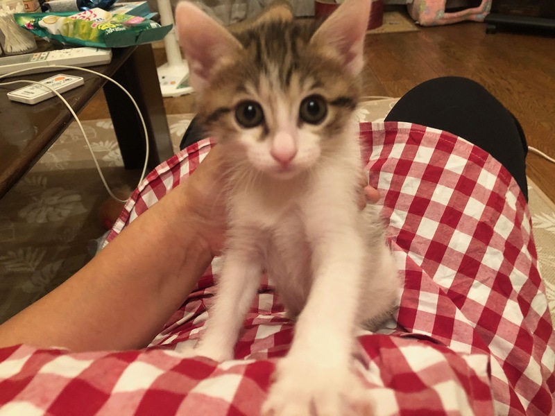 | 里親募集する理由 | 乳飲児でカラスに襲われているところを保護しました。 順調に成長したので、仔猫の幸せを考えて里親様を募集します。 |