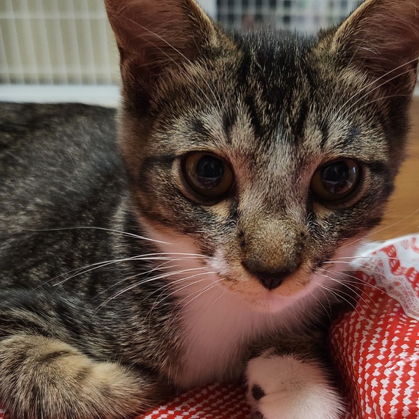 | 特徴(性格など) | ちょっとビビりさんですが撫でられるとゴロゴロ喉を鳴らしてくれます。遊ぶのも大好き他の兄妹達の中でおもちゃを見つけると1番に遊びだす元気いっぱいのキジ白靴下をはいた女の子です お家に慣れるのに少し時間がかかるかもしれませんがゆっくり向き合って頂ければと思います |