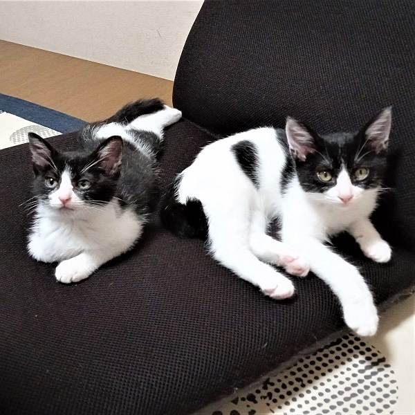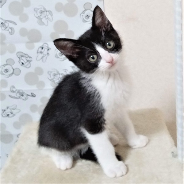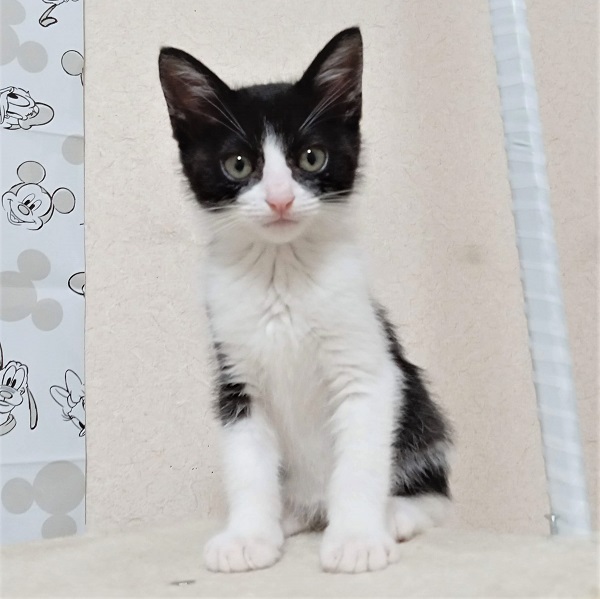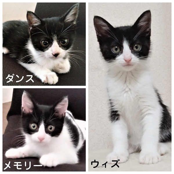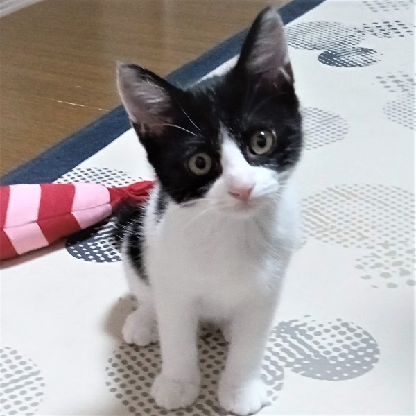 | 特徴(性格など) | ☆☆☆ご希望の方は、以下のアンケートフォームにご記入の上、送信してください☆☆☆ ねこ親希望アンケート→ http://chibawan.net/contactform_cat 【猫No】3698 【愛称】 ウィズ 【性別】 メス 【年齢】 推定3ヶ月(23/7/28現在)(23/5/4頃生) 【毛色】 黒白 ハチワレ 【体重】 0.95kg(23/7/28現在) 【状態】 ワクチン2回済(23/6/8)(23/6/29)、血液検査(猫エイズ陰性・白血病陰性)、ノミダニ駆除済、駆虫済、トイレ躾済 【預かり場所】 千葉県船橋市 【日記】 https://www.instagram.com/jasmine81865/ 【経緯】 横浜市動物愛護センターより引き取り 【性格】姉妹弟3匹でセンターから引き出されました。みんなとても元気でおてんばです。 ウィズは少し身体が小さめで妹らしく物怖じしない性格です。 とても人懐こく初対面の人にも寄っていきます。甘えん坊で抱っこもナデナデも大好きです。 撫でられるとゴロゴロと言います。 綺麗なハチワレでお鼻がピンクなのが女の子っぽくて可愛いです! ニャンプロしたりおもちゃを追いかけたり仲良し3姉妹弟で元気に遊んでいます。 お留守番も出来ますし、夜はケージで大人しく寝るお利口さんです。 【補足事項】 姉弟猫(黒白ハチワレ・オス)(白黒ハチワレ・メス)と一緒にお迎えして下さる里親さんを募集します。 仲良しの姉妹弟と一緒ならお留守番も寂しくなくて安心です。 ※3匹もしくは2匹一緒にお迎えして下さる方を優先させて頂きます。 ※1匹のみご希望の場合は一緒に遊べる2歳位までの先住猫ちゃんがいらっしゃるご家庭に限定させて頂きます。 ※先住猫(2歳位まで)がいらっしゃらない1匹ご希望の方は他の猫ちゃんをご検討下さい。 大変申し訳ございませんが、仔猫のためお一人暮らしやご高齢の方のみのご世帯はお申込みをお断りさせて頂きます。 また長時間お留守をされるご家庭の場合も、条件によってはお申し込みをお断わりさせていただく場合がございます。 ※お試し生活は、不妊去勢手術などの医療処置が全て完了してからとなります。(8月中旬頃予定) 【その他】愛情いっぱいの終生飼養、ネコにあった生活スタイル、完全室内飼育、 脱走・迷子防止対策、定期的なワクチン接種などの健康管理をお約束いただける 千葉県船橋市から1時間以内のご家庭で、アンケートに快くお答えいただける方からのお問い合わせをお待ちしています。 |