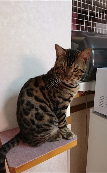 | 特徴(性格など) | 綺麗なヒョウ柄です。 抱っこは苦手ですが、撫でられるのは大好きな大人しい子です。 血統書付きです。 |