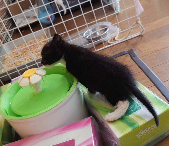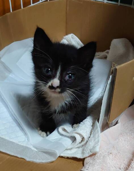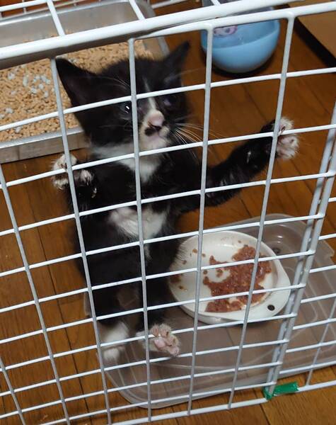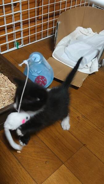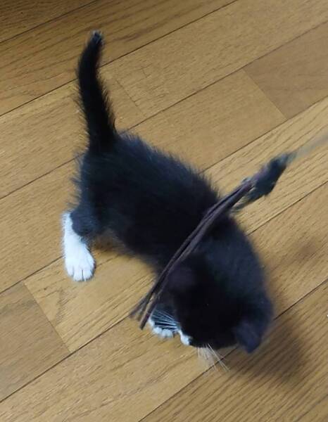 | 特徴(性格など) | 甘えん坊で、お転婆な女の子です 黒毛多めのハチワレのお顔の中のつぶらな瞳で遊んでと見つめられると、胸がキュンとします 黒毛の中にも、両前足が手袋の指先を抜いたように白く、両後ろ足は靴下を履いたように白いです |