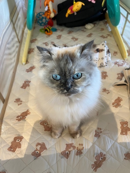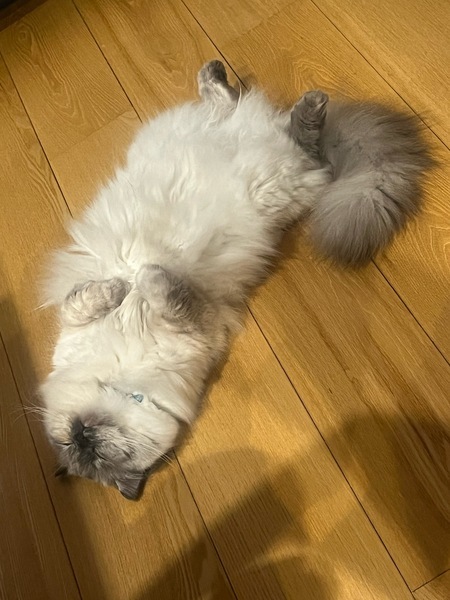 | 特徴(性格など) | ブルーポイントの長毛ミヌエットちゃんです。 人懐こくてとても穏やかで、気づいたらそっと横でへそ天してます。 甘えん坊ですがツンデレな一面もあり、可愛いです。少しビビりかもしれません。 好奇心旺盛ですが、日向ぼっこしていることの方が多いです。 フィラリア、ノミ、ダニ、回虫の予防薬を毎月塗布しております。 月に1回シャンプーしています。 |