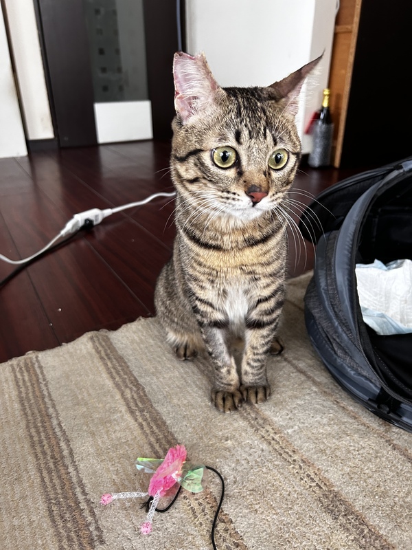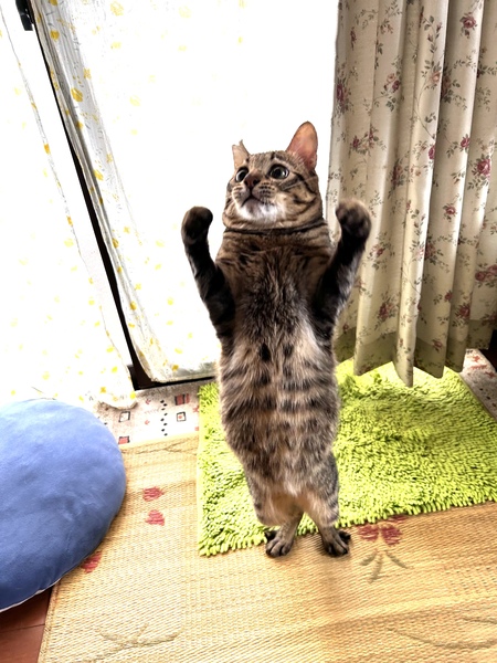 | その他(譲渡条件など) | 猫の扱いに慣れた方ならどなたでも。 若くて運動神経抜群なので お高い花瓶など置いたお屋敷はやばいです(*´ω`*) どんなに忙しくても決まった時間に 毎日じゃらして遊んであげられる方。 似たような運動量の先住猫さんがいると 楽しいかもしれません。 出来れば福岡県内のご家族を希望しますが 遠方でもお気軽にご相談ください。 見学、トライアル可能です。 譲渡後もお写真など送っていただけると嬉しいです。 |