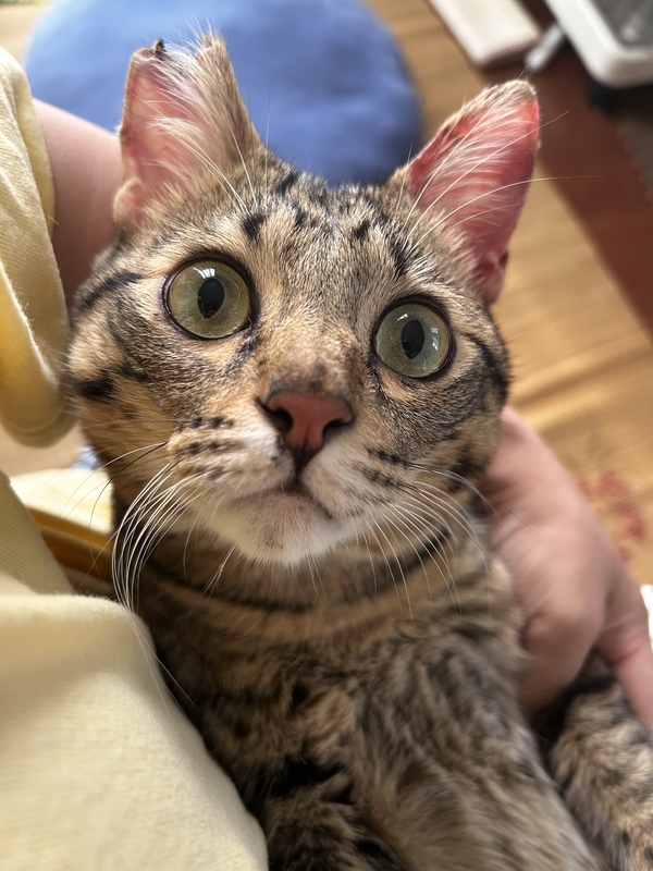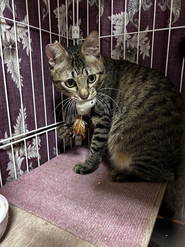 | 特徴(性格など) | 艶々のキジトラ、緑茶色の大きな目 先っぽだけ丸い鍵しっぽ、右耳桜カット 陽気で素直で抱っこ大好きな男の子。 ちょっぴり構ってちゃん気味 フードは何でもとりあえず平らげます(太りやすいので注意) 時々はしゃいでヤンチャなこともあります! お届け前にはワクチン接種予定です。 |