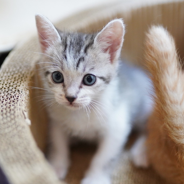 | 特徴(性格など) | 保護時から、他の兄妹たちより一回り小さく、成長も遅れていましたが、今では体格以外は他の子たちと変わりません。 ご飯もとてもよく食べて、いつもお腹がぽんぽんなので、体格ももう少ししたら追いつくかもしれません。 尻尾の先が白くてペンライトみたいになっています。 とにかく何をしててもかわいいです。 ミルクから人間が育てているのでとても人馴れしており、甘えん坊ですぐにゴロゴロ言います。 毎日兄妹たちと元気に取っ組み合いや追いかけっこをして遊んでいます。 推定6月15日ごろ生まれ。 健康管理や脱走対策の他、子猫が安全に暮らせるよう、お部屋が片付いているご家庭とのご縁を希望します。 仲良しの五つごの誰かと一緒にお迎え頂くか、子猫OKな若い先住猫さんのいるご家庭だと嬉しいです。 ●保護主Instagram https://www.instagram.com/6240cat/ ●保護主Googleフォト https://photos.app.goo.gl/95RgMsXLEQfiEFzaA |