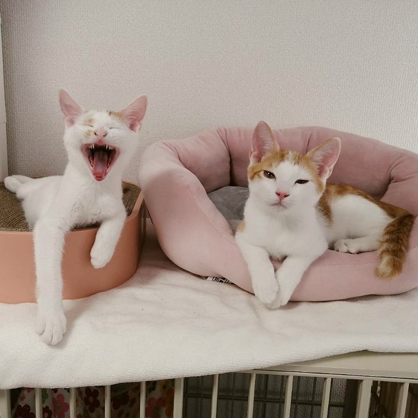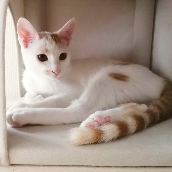 | 特徴(性格など) | 推定2023年5月15日生まれ、白茶の仮名おきぬちゃんです。 おきぬちゃんは、白が多めの和風な女の子。 個人的に猫村さんに似ていると感じています。 猫村さんのトレードマークのピンクのエプロン、おきぬちゃんも絶対に似合うことでしょう(笑) とても賢く、また兄妹のおあげちゃんを守るような素振りも見せるため、心優しい子だと思います! かなり人間にも心を許してくれるようになり、添い寝が特技です(萌) 今現在すごい甘えん坊なわけではないですが、気が向けば(笑)自ら膝に乗るように。 また目が合えばかなりの確率で喉を鳴らしますし、愛情表現なのか人間の顔や耳たぶの辺りで鼻息が荒くなります(笑) 遊ぶのも大好きで、私が同室にいるときもドタバタ無邪気に遊べるようになりました。 ですが、まだ毎回リセットされるのか、私が入室するとほんのちょっぴり警戒心が顔を出します(笑) そんなわけでこれからもノビシロありの女の子です! これからもたくさんのおきぬちゃんの成長が見られることでしょう。 保護主の役得で楽しみしかありませんが、1日でも早く本当のご家族様のもとでたくさんの成長を見せてもらいたいと願っています。 これからどんどん違う一面を見せてくれるであろうおきぬちゃんは、焦らずじっくり向き合って下さるご家族様を求めています。 保護主のわがままで誠に申し訳ございませんが、ペアで迎えていただけるご家族様を優先させていただきます。 もしくは、まだ発展途上な子のため、先住動物のいない、単頭で飼育いただけるご家族様を希望しています。 里親様には、目に見える形での脱走防止対策の徹底(よろしければ私も一緒に考えます!屋内・換気する窓・玄関の写真や間取り図をご持参いただけると大変大変うれしいです。アドバイスさせていただきます)と、家庭内事故を防ぐため、安心安全で清潔な住環境を必須でお願いしています。 |