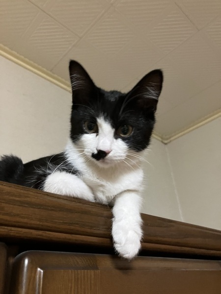 | 特徴(性格など) | 少し臆病な女の子です。 保護して数日は隠れていましたが慣れてきてオモチャにも遠慮がちに手を出すようになってきました。 最近は膝にも乗ってきて甘えるようになりました。 |