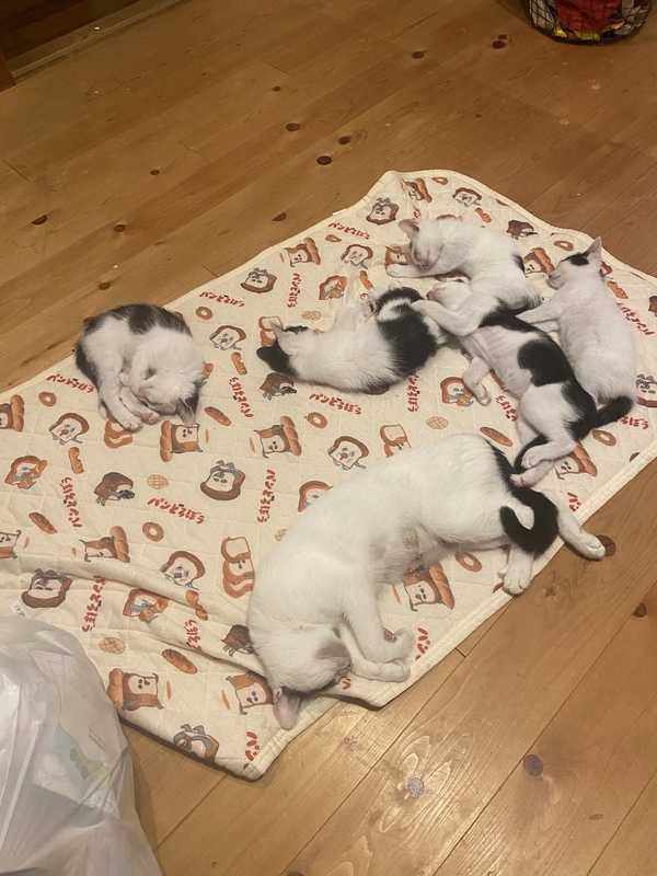 | 特徴(性格など) | 甘えん坊のママから生まれた5兄弟です。 抱っこでチュールがお気に入りです。 よく食べよく遊び、にゃんプロの日々です╰(*´︶`*)╯♡ |