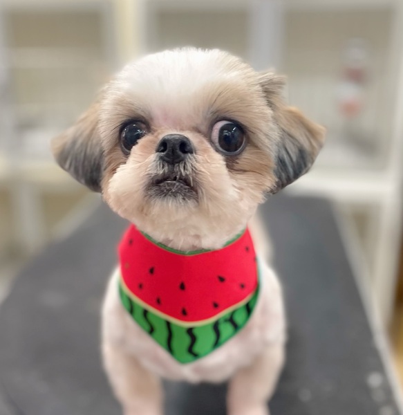 | 特徴(性格など) | 甘えん坊で朗らかな良い子です。完全室内で育っているため、お散歩のマナーはついていません。 シーズの標準にしては小さい方です。(3.5キロ)ご覧のようにめちゃめちゃかわいいまん丸お顔の女の子です。。 |