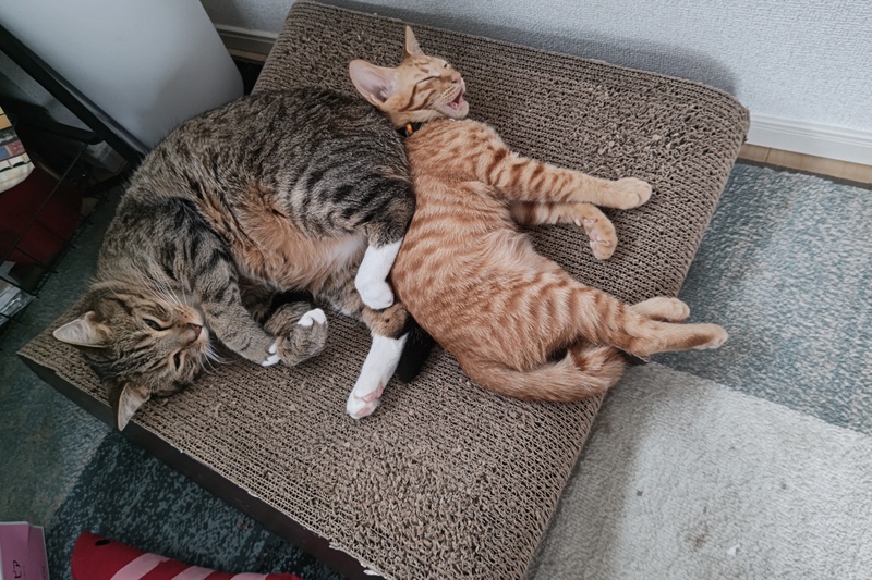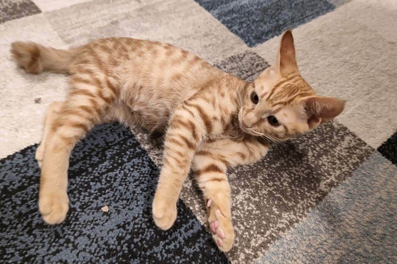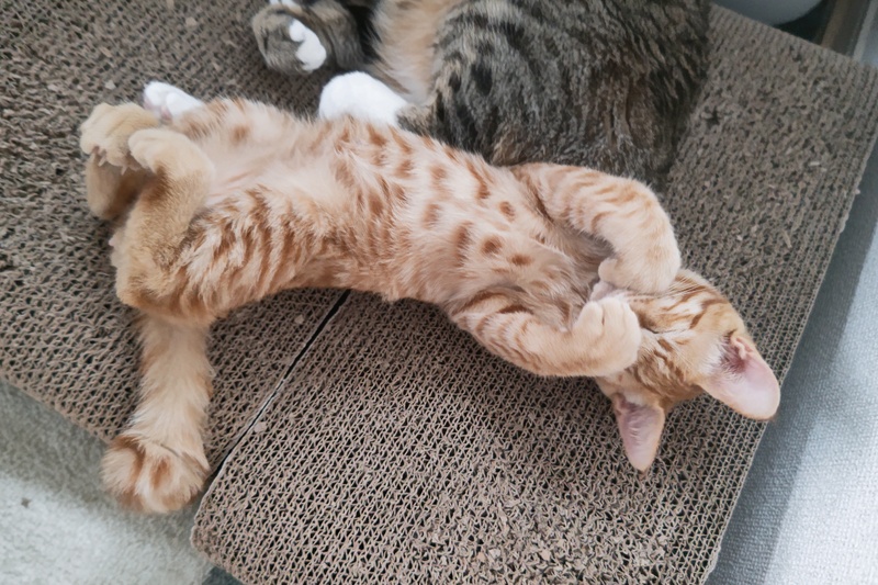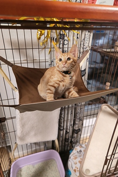 | 特徴(性格など) | 茶トラカギしっぽ。 ヤンチャで甘えん坊。 人も猫も大好きで、物怖じせず先住猫2匹とも仲良くしております。 ナァナァと仔猫らしい可愛い鳴き方をします。 猫白血病ウイルス等全て陰性です。 |