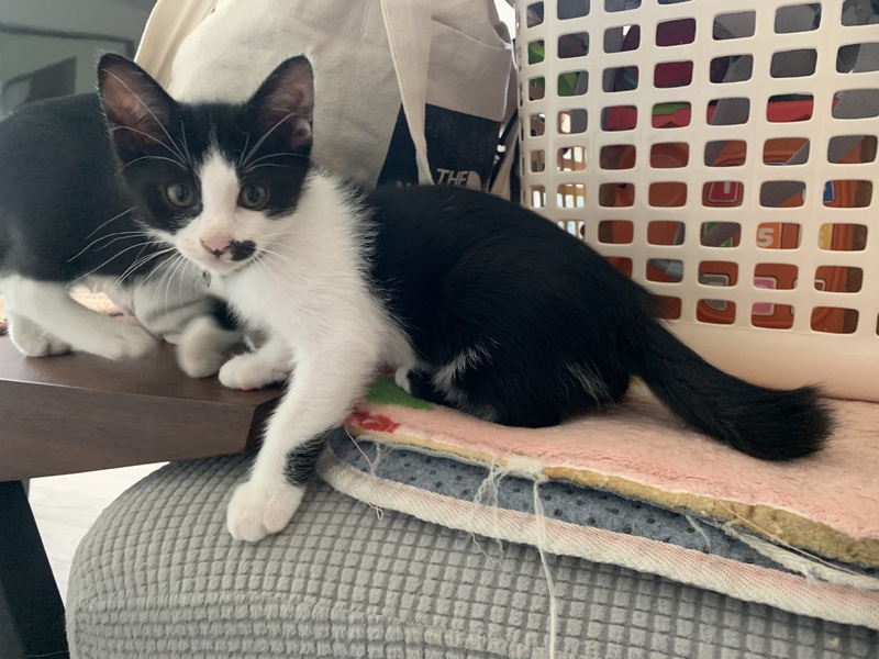 | 特徴(性格など) | 元気でやんちゃな黒白の男の子です。 先住猫とも仲良くやっています。 |